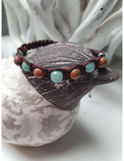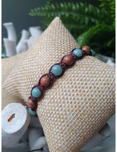 Bracelet Shamballa tressé avec fil nylon marron.