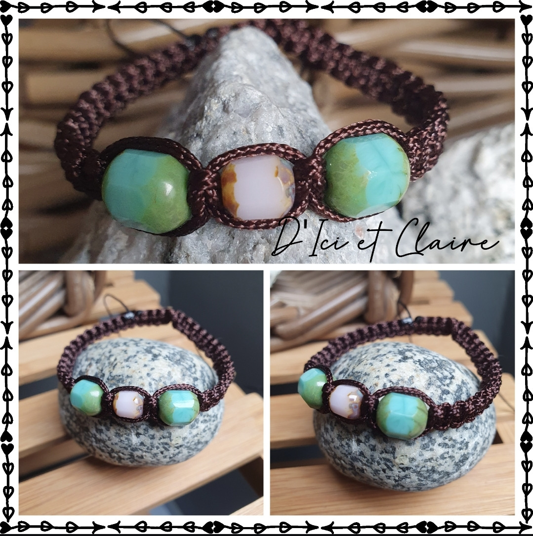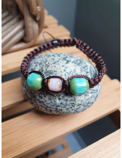 Bracelet Shamballa tressé avec fil nylon marron.