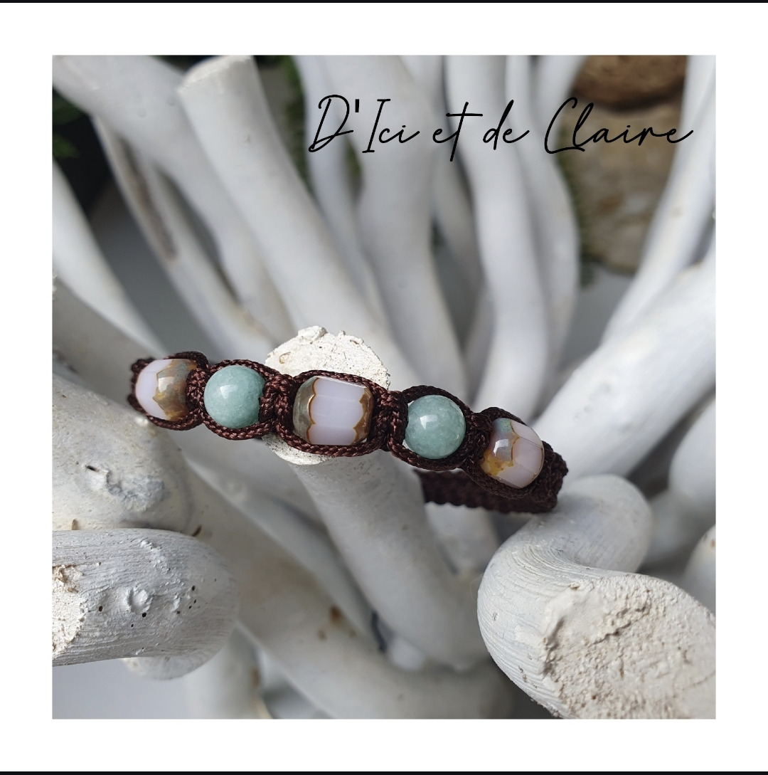 Bracelet Shamballa tressé avec fil nylon marron.
