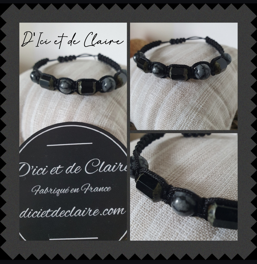 Les perles sont en pierres naturelles d'obsidiennes mouchetées .
