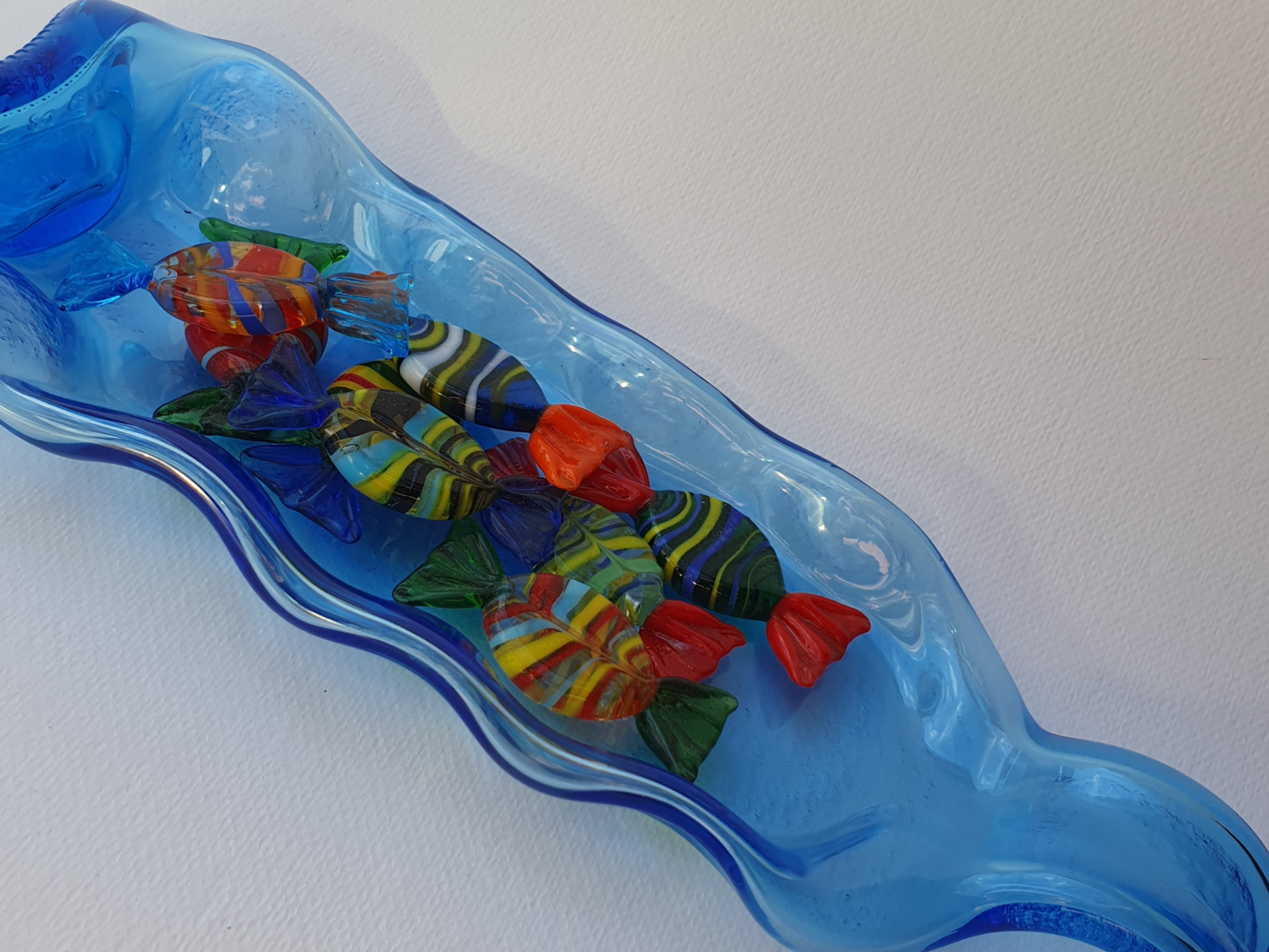 Cette bouteille connut bien des mésaventures pour arriver à ce bel objet de décoration : un plat , un vide poche .....