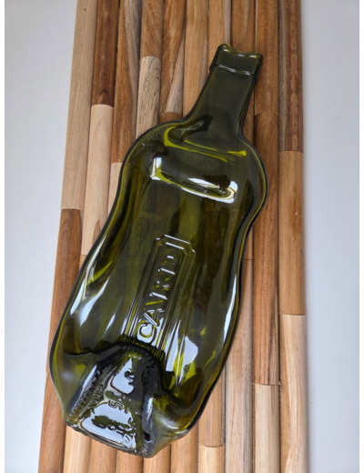 Cette bouteille connut bien des mésaventures pour arriver à ce bel objet de décoration : un plat , un vide poche .....