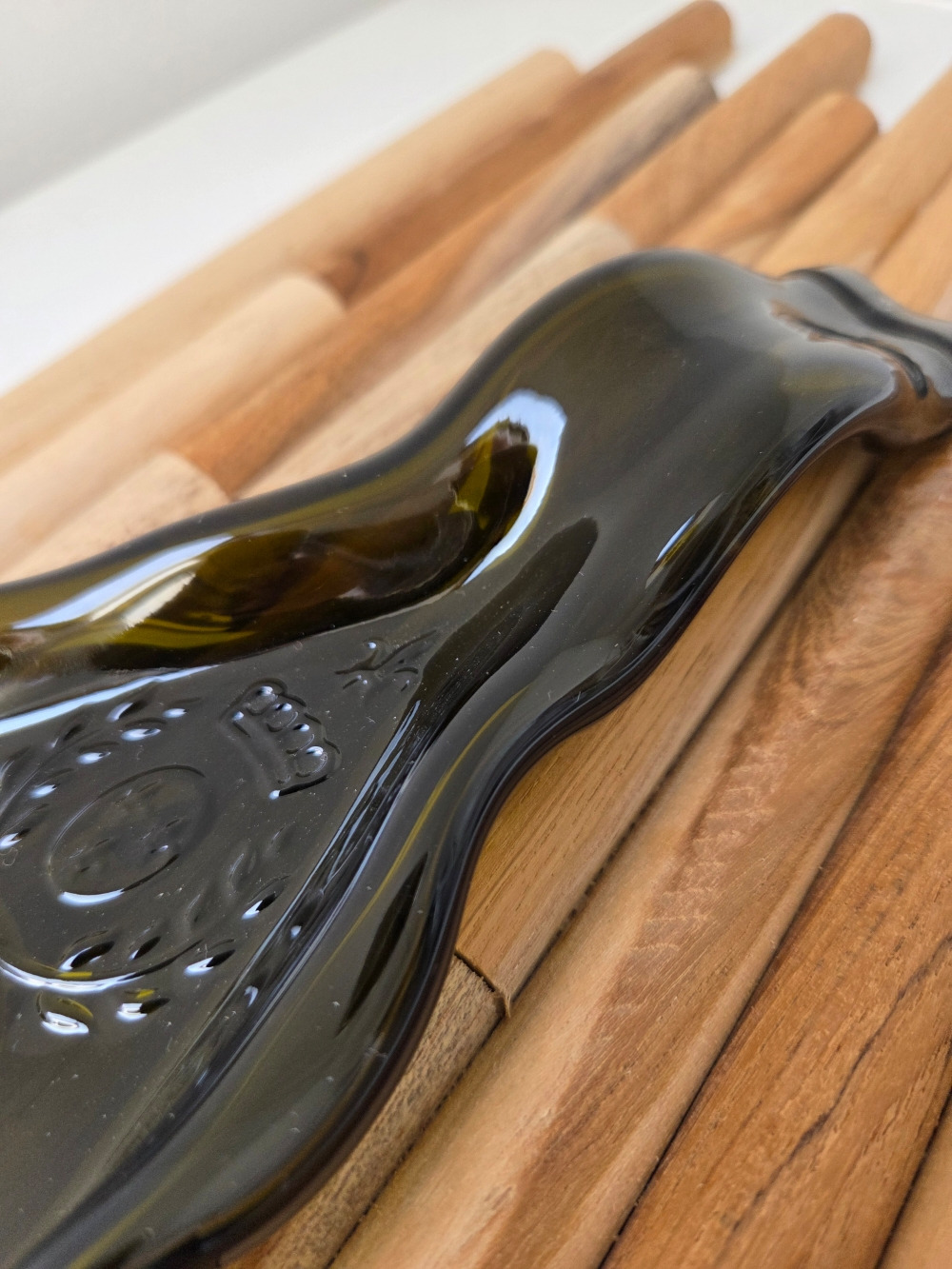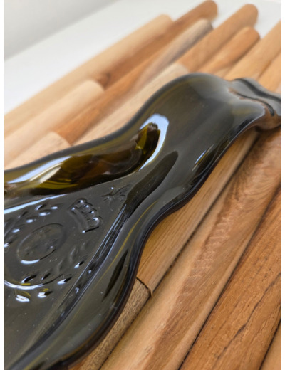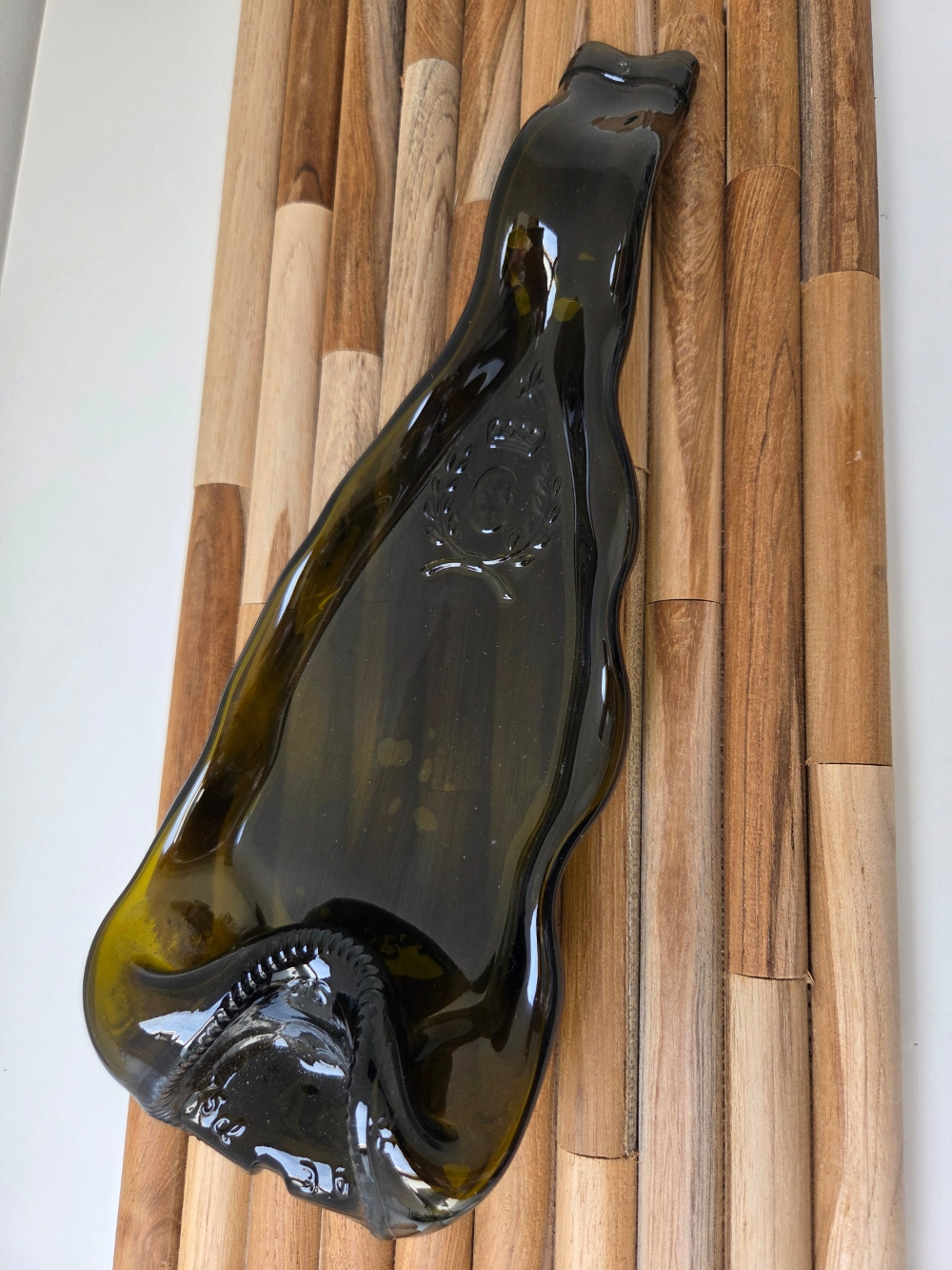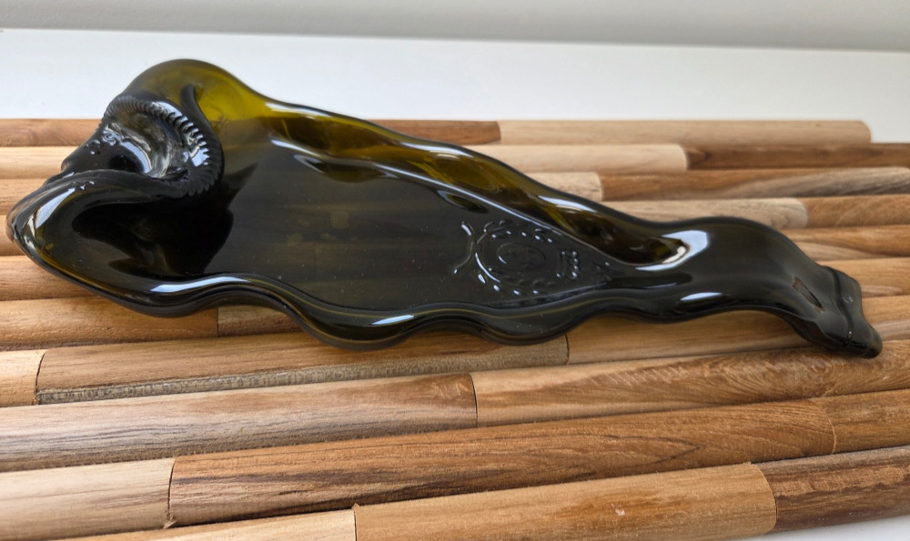 Cette bouteille connut bien des mésaventures pour arriver à ce bel objet de décoration : un plat , un vide poche .....