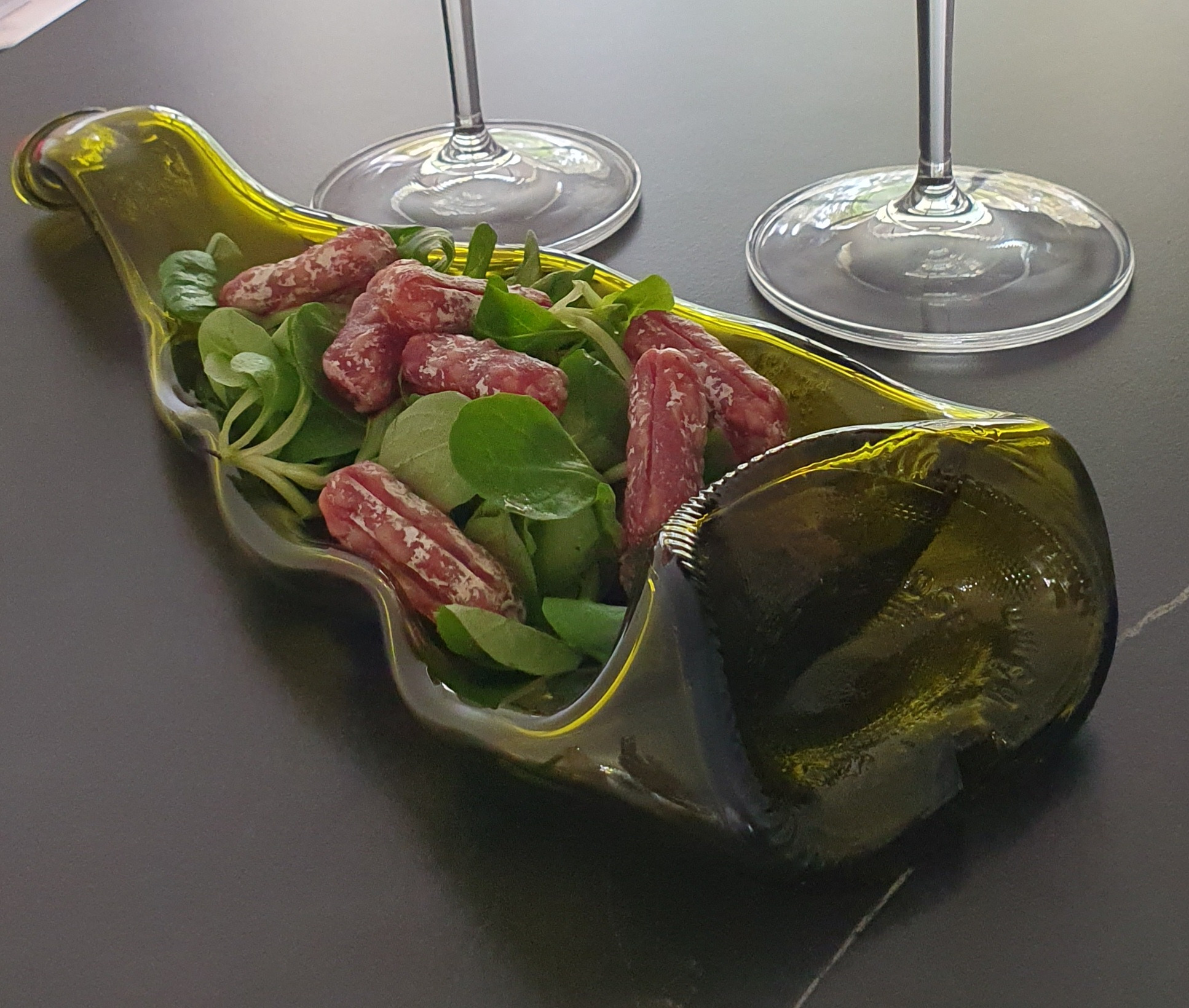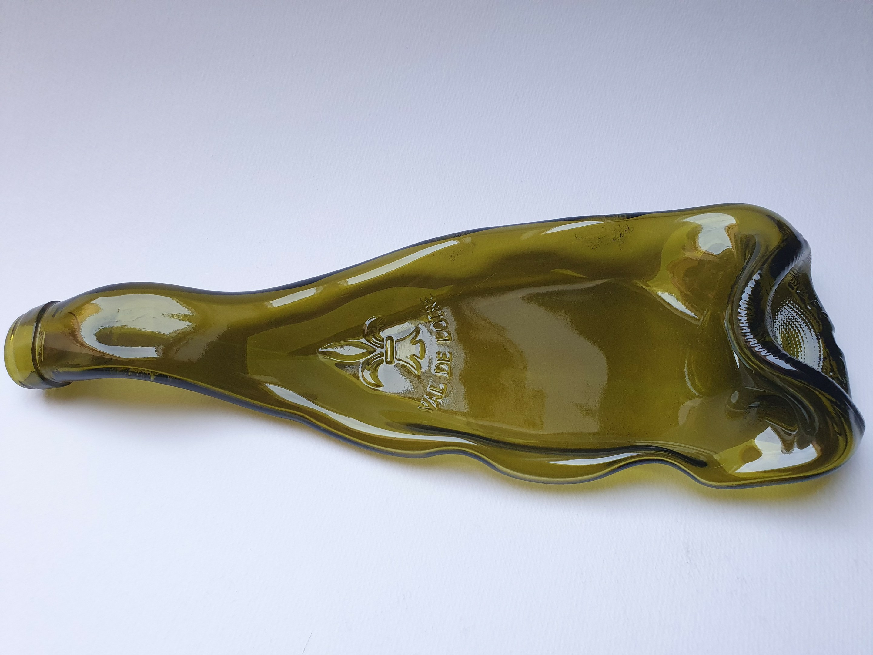 Cette bouteille connut bien des mésaventures pour arriver à ce bel objet de décoration : un plat , un vide poche .....