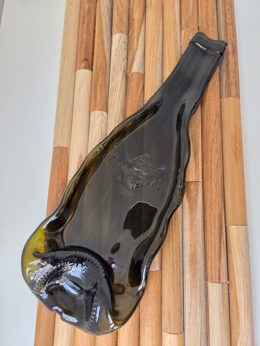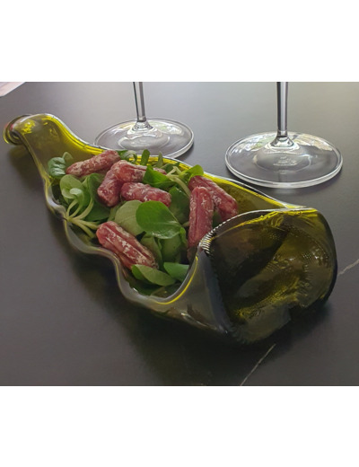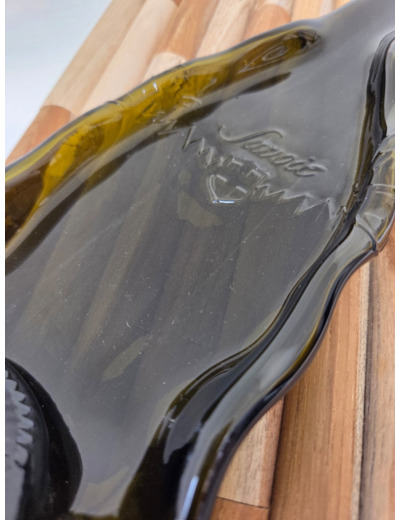 Cette bouteille connut bien des mésaventures pour arriver à ce bel objet de décoration : un plat , un vide poche .....