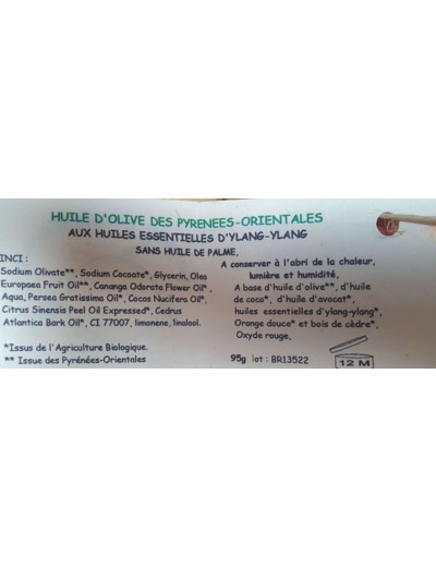 Savon "bon réveil" aux huiles essentielles bio de bois de cèdre, de Ylang Ylang et orange douce.