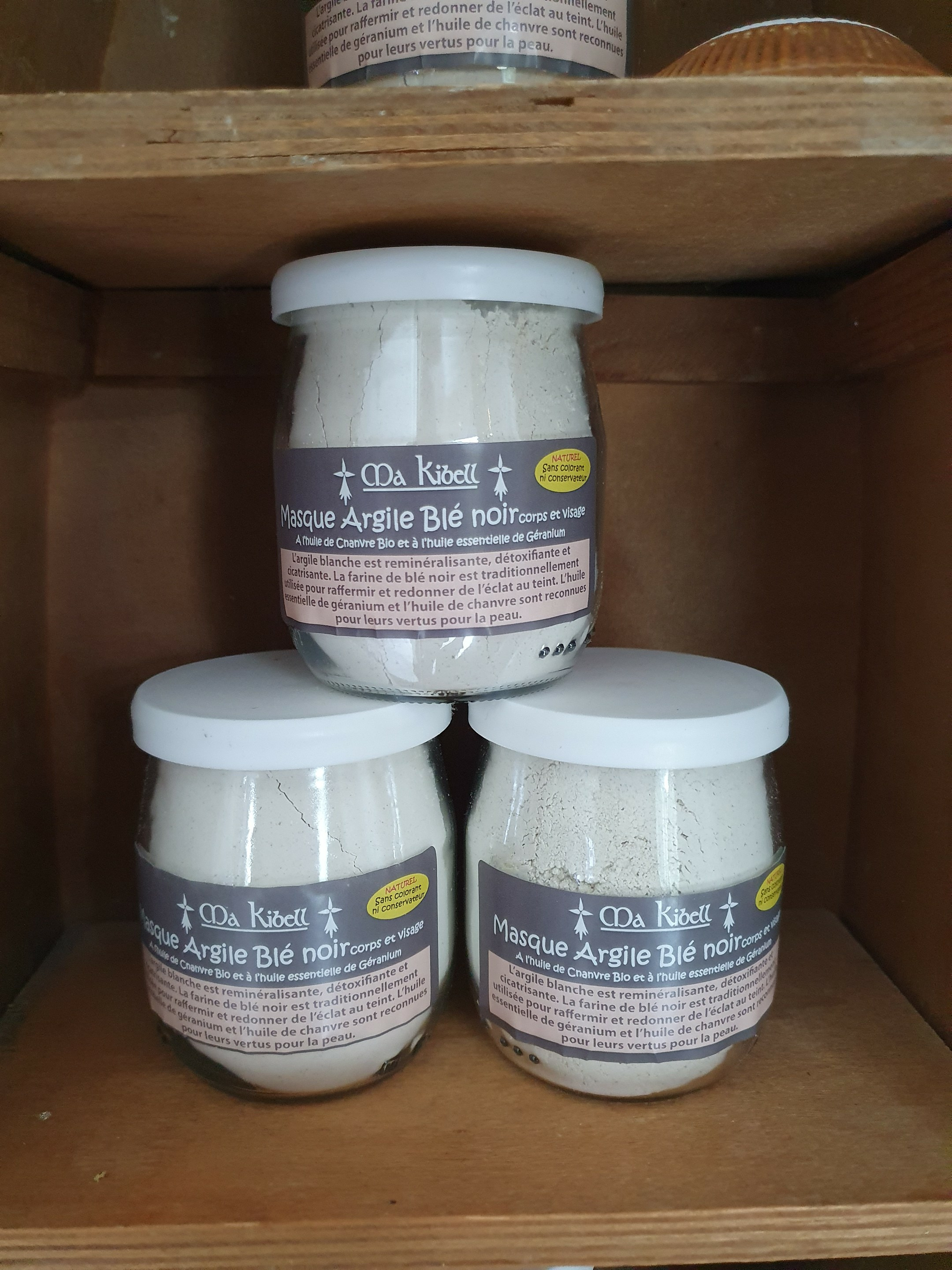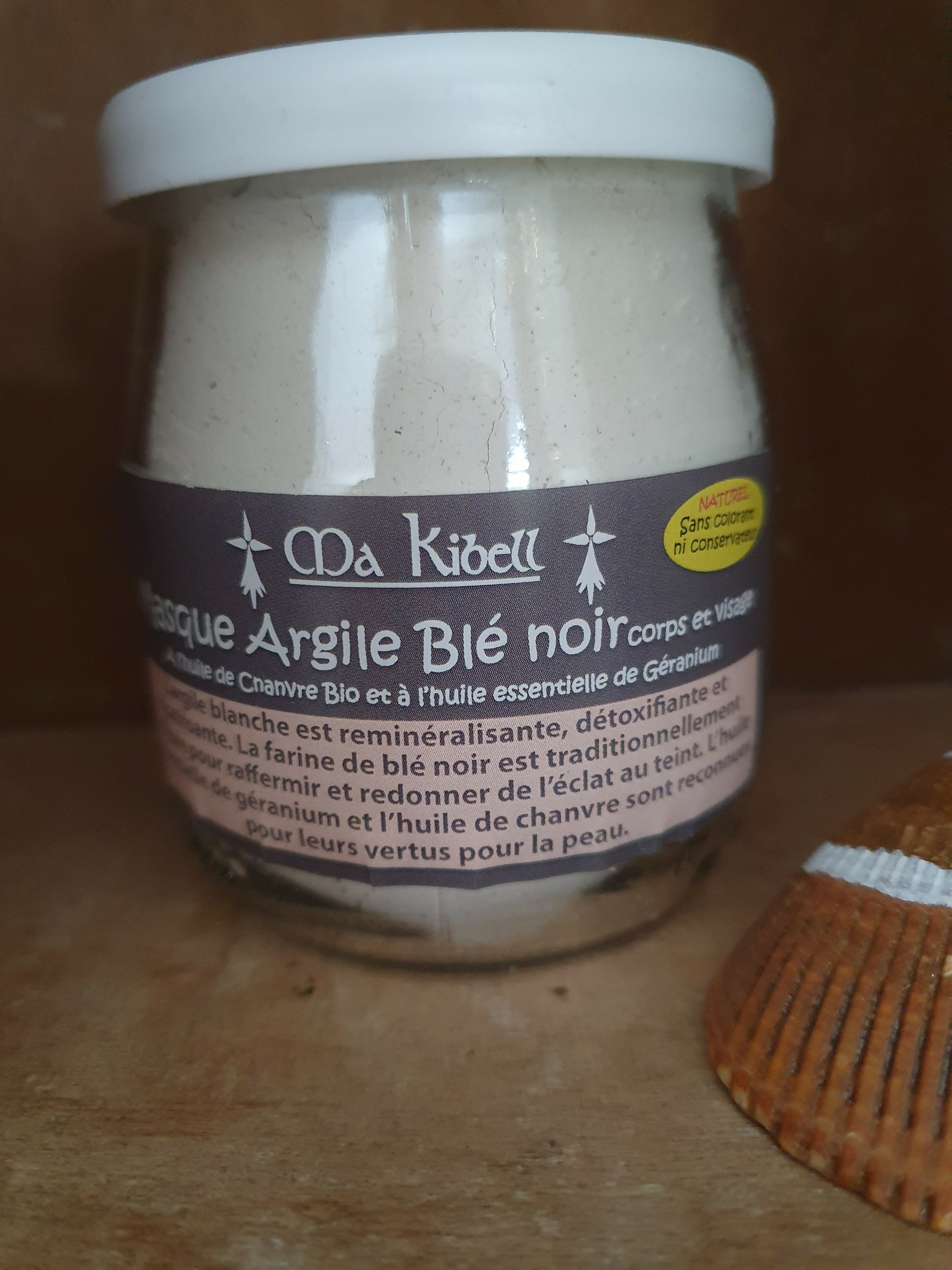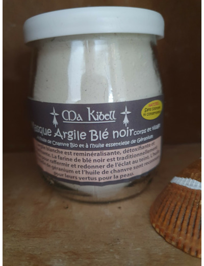 Masque Argile et Blé Noir , il est complété également par de l'huile de Chanvre bio et de l'huile essentielle de Géranium.