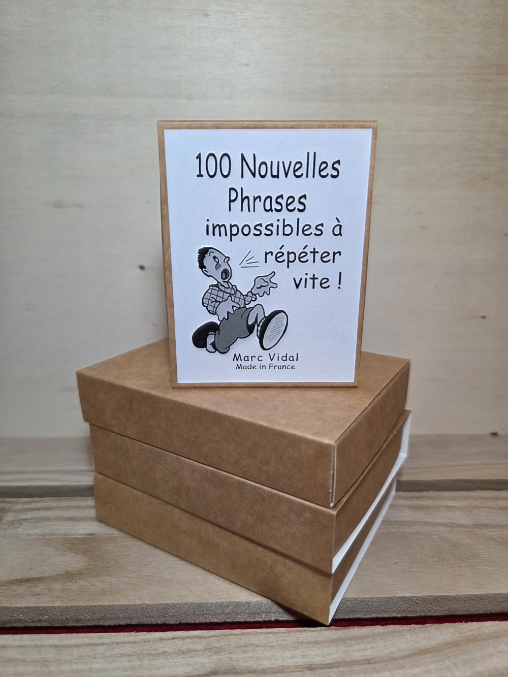 100 Phrases impossibles à répéter vite ! présentées en petites cartes 6X7.5cm .