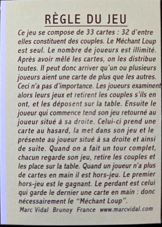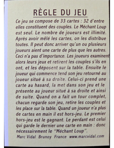 Jeu du Méchant Loup présenté dans une boite en carton 10X8 cm .