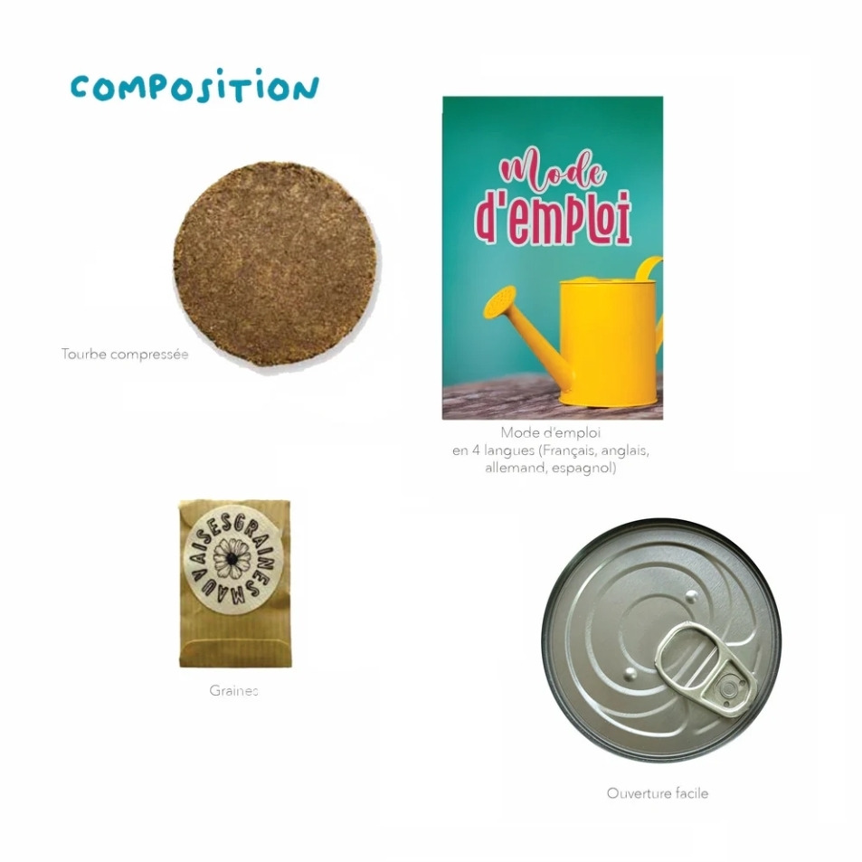 Kit de graines à semer ; hauteur 10 cm et 7.3 cm de diamètre .