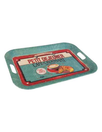 Fabriqué en plastique résistant, il est léger et pratique, tout en conservant une belle présence grâce à ses grandes dimensions (53 x 38 cm). Ses deux poignées intégrées assurent une prise en main facile et sécurisée. Que ce soit pour servir le café, le brunch ou simplement décorer votre cuisine, ce plateau de style vintage est aussi joli que fonctionnel.