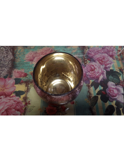 Joli Photophore en Verre. L'intérieur est doré. Effet moucheté à l'intérieur pour laisser passer la lumière. L'extérieur est de couleur vieux Rose, avec un effet craquelé .