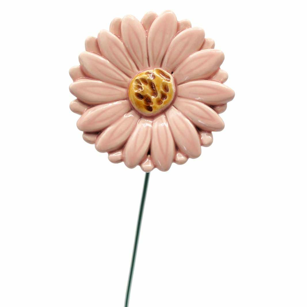 Offrez un souffle printanier à votre déco avec ce gerbera en céramique, soigneusement fabriqué dans des teintes réalistes : un rose délicat, un cœur jaune lumineux et une tige verte en métal qui rappelle la plante naturelle.