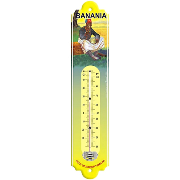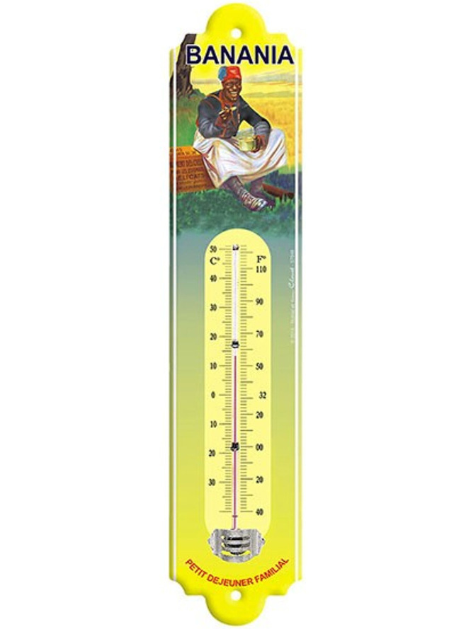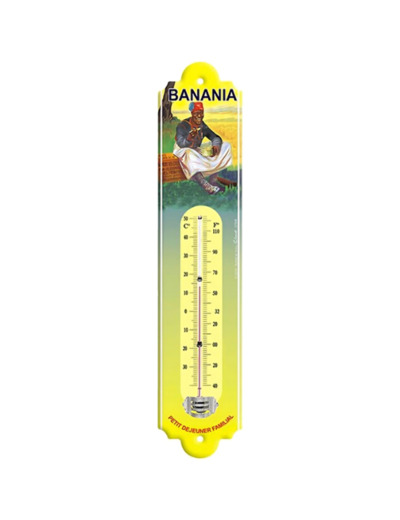 Thermomètre métal de style vintage sous licence. Reproduction de publicités anciennes. Compatible intérieur et extérieur.