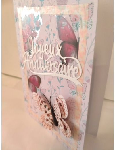 Carte Papier " Joyeux Anniversaire " - Papillon en relief .
