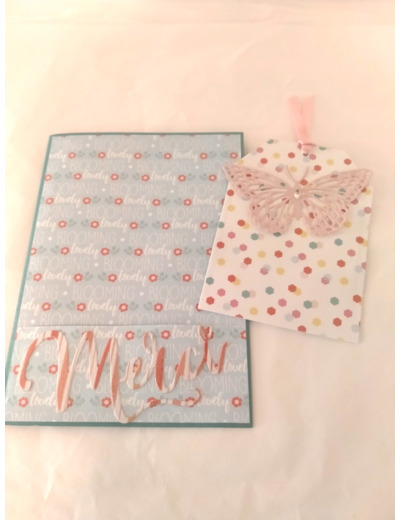 Carte " Merci " + Marque page . Crétion Maison Unique. Enveloppe Fourni