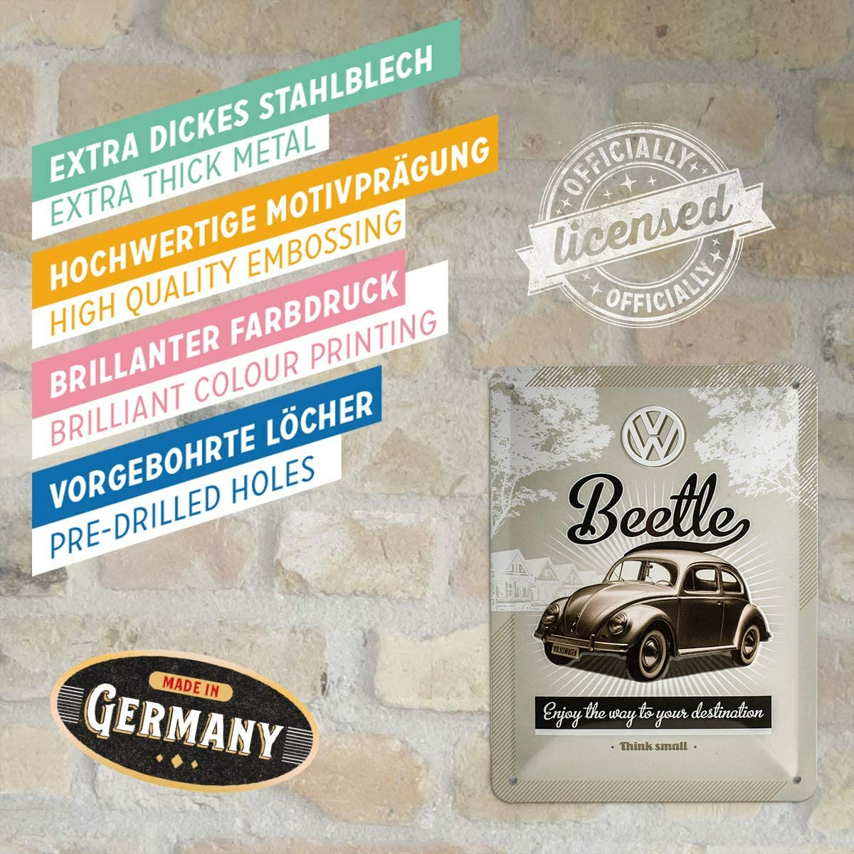 Très belle plaque métal Beetle pour les fans de la marque. Cette plaque est fabriquée par la marque allemande Nostalgic Art. Très jolie plaque à installer dans un garage, un bureau. Cette plaque est bombée et en relief. Le fait de bomber la plaque permet de la rigidifier et de l'alléger. Le rendu 3d apporte une grande profondeur à cette plaque. Le fait d’avoir la licence vous garantit une reproduction des plus fidèles par rapport à l’originale.