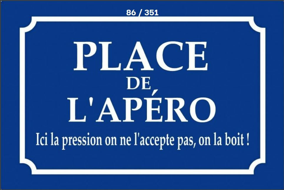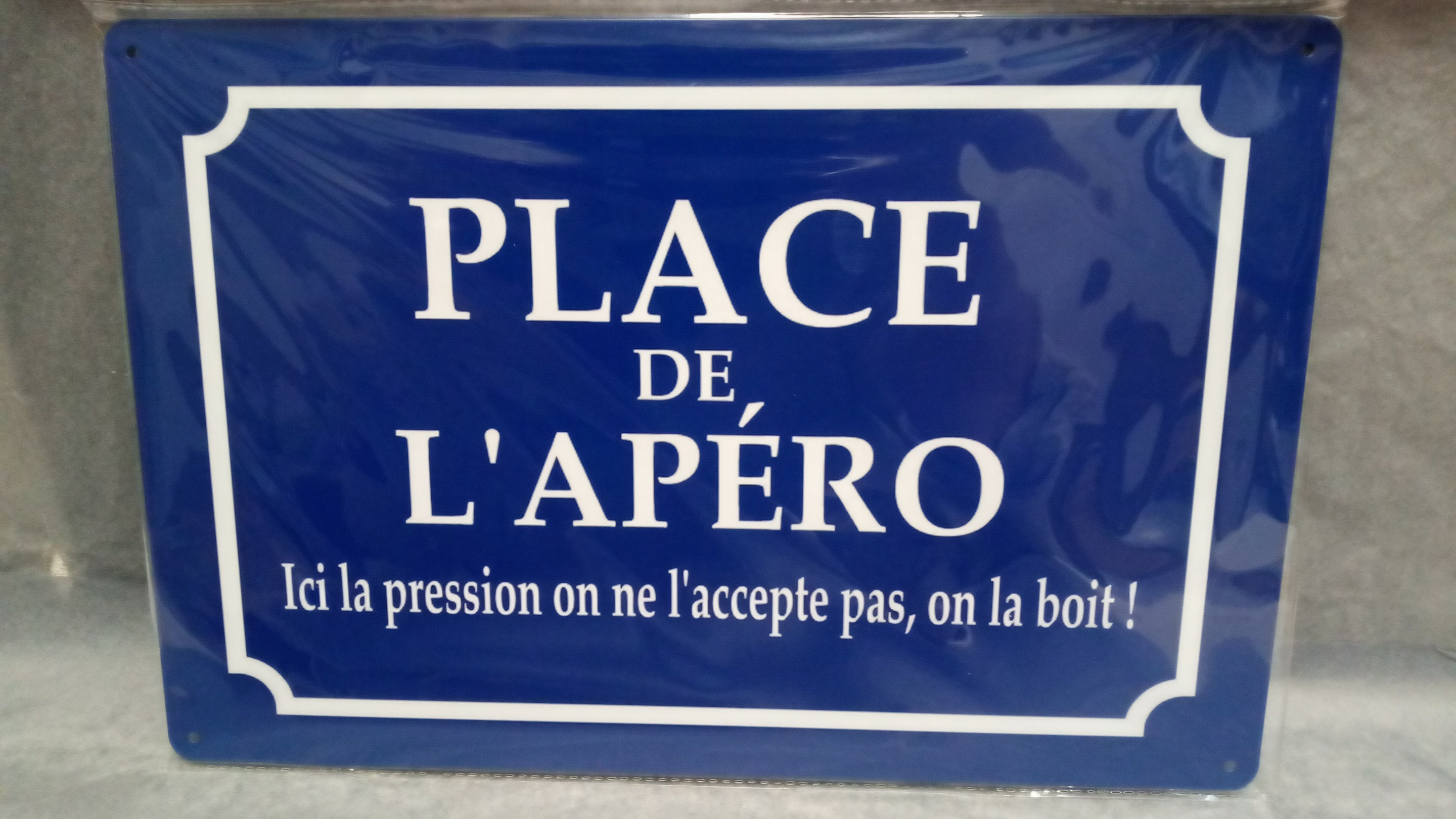 Message : "Place de l’apéro – ici la pression on ne l’accepte pas, on la boit !"