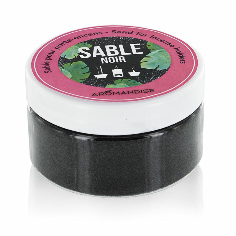Le sable noir est idéal pour vos porte-encens évidés, car on peut y piquer bâtonnets d’encens, isoler de la chaleur des charbons ardents et servir de supports aux cônes.