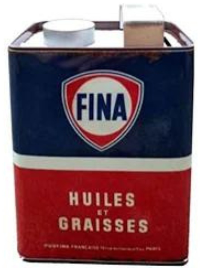 Tirelire bidon FINA Huile et graisses . Très beau produit vintage tout en métal .