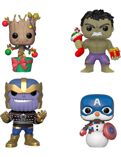 Transformez votre saison des fêtes en un véritable spectacle avec l'ensemble Funko Pop! Marvel: Holiday ! Ce lot de 4 figurines collector met en scène vos super-héros Marvel préférés, prêts à célébrer Noël avec style. Chaque personnage est vêtu de costumes festifs qui apporteront une touche de magie à votre décor des fêtes.