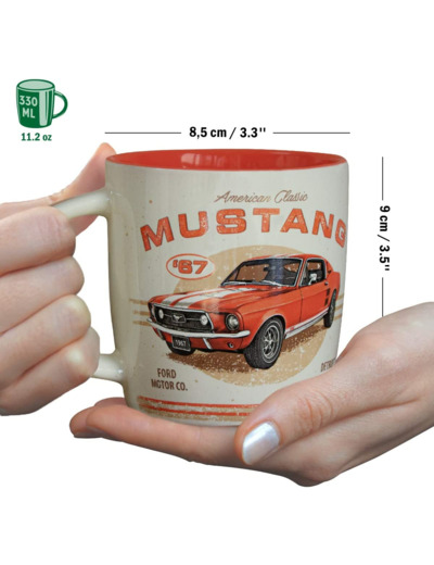 Très beau mug Mustang en céramique. Pour un fan de La ford Mustang. La forme de ce mug le rend très agréable à prendre en main pour boire votre boisson préférée. Nostalgic Art travaille en étroite collaboration avec les fabricants pour avoir des reproductions de publicité les plus fidèles possibles.