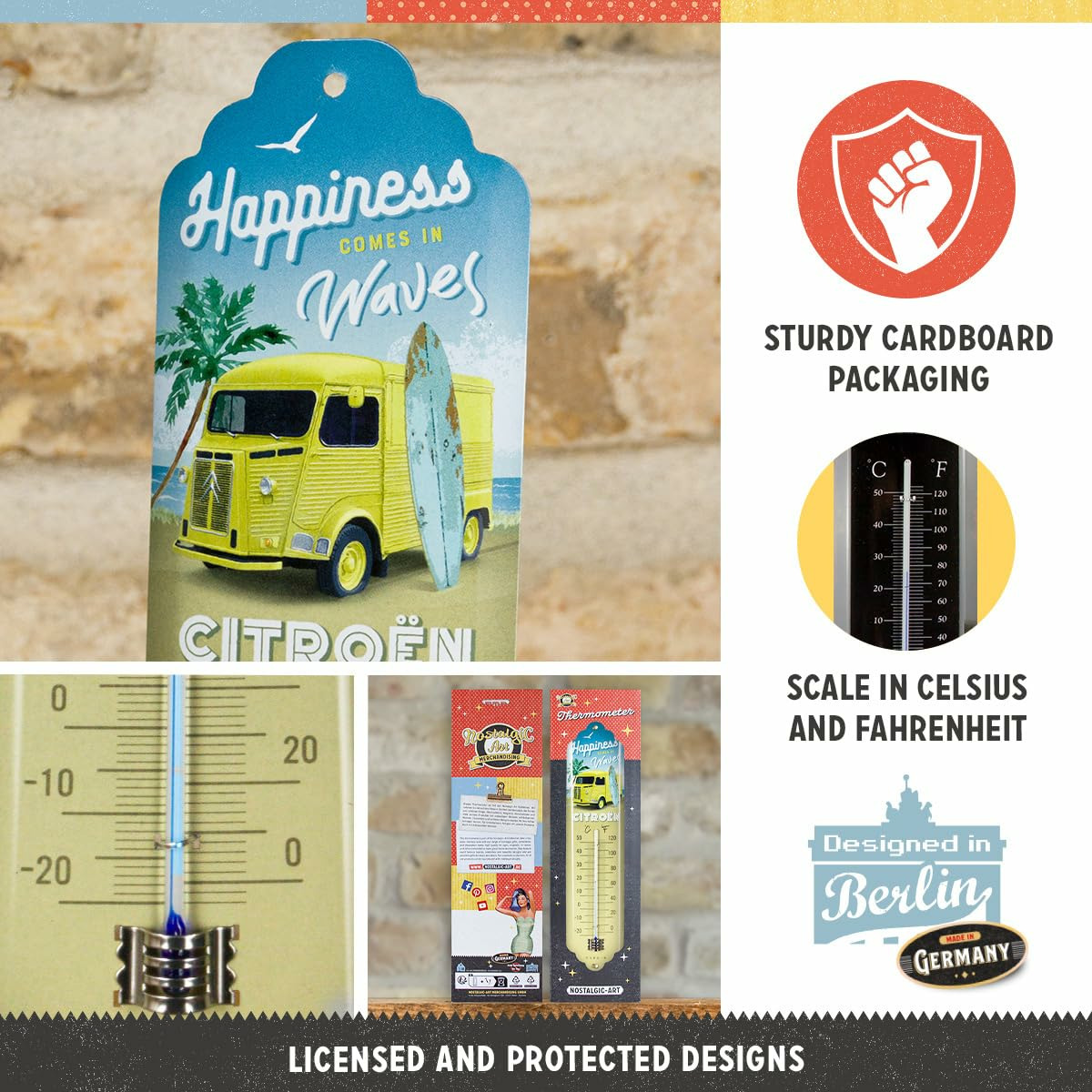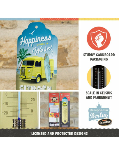 Pourquoi on l’aime :Ce thermomètre décoratif rend hommage à la légendaire fourgonnette Citroën Type H, icône du patrimoine automobile français. Un objet aussi utile que décoratif, parfait pour offrir ou pour sublimer un intérieur au style rétro-industriel.