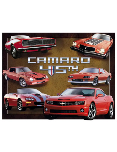 Plaque plate Camaro . Dimensions: 31.5 x 40.5cm 4 trous de fixation. Plaque réalisée sous licence américaine. Made In USA.