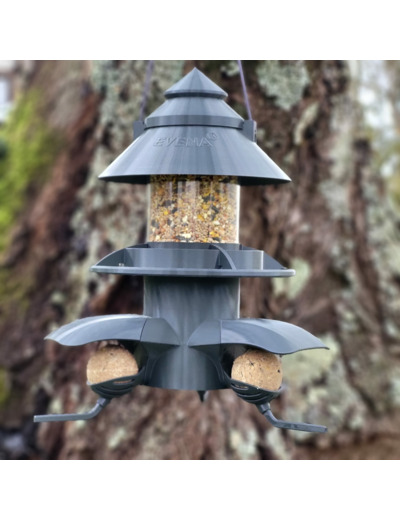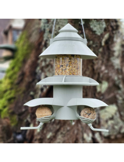 La mangeoire Céleste + peut être complétée par le module Abreuvoir et le module Cacahuète.