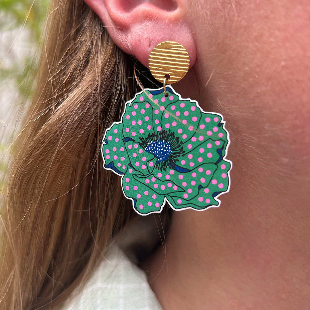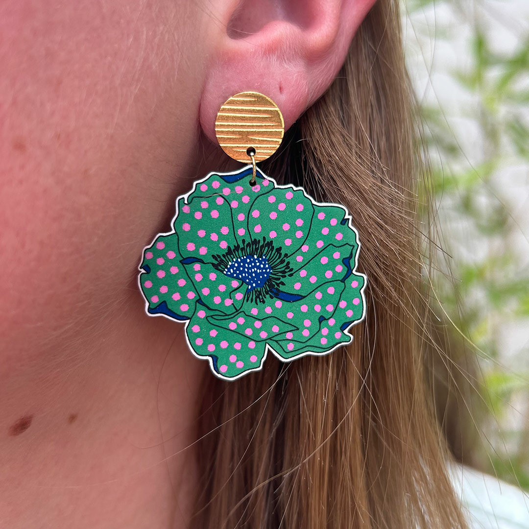 BO anémones coloris vert avec des pois rose, tellement légères qu'on les oublierait presque, avec des couleurs peps et des paillettes, que demander de + ?