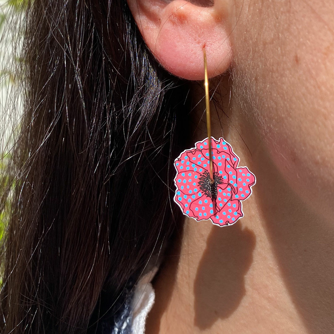 Créoles anémones, tellement légères qu'on les oublierait presque, avec des couleurs peps et des paillettes, que demander de + ?