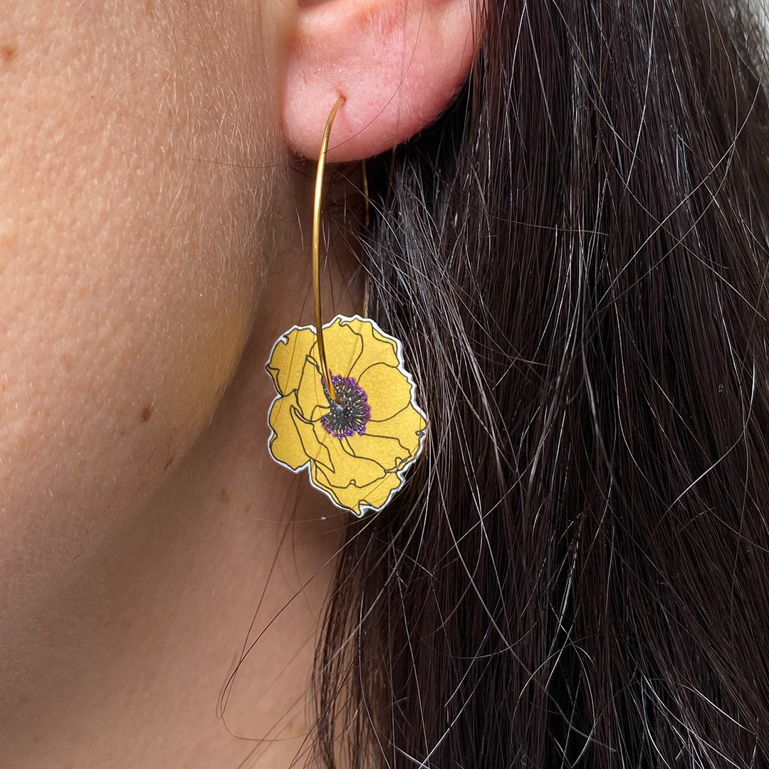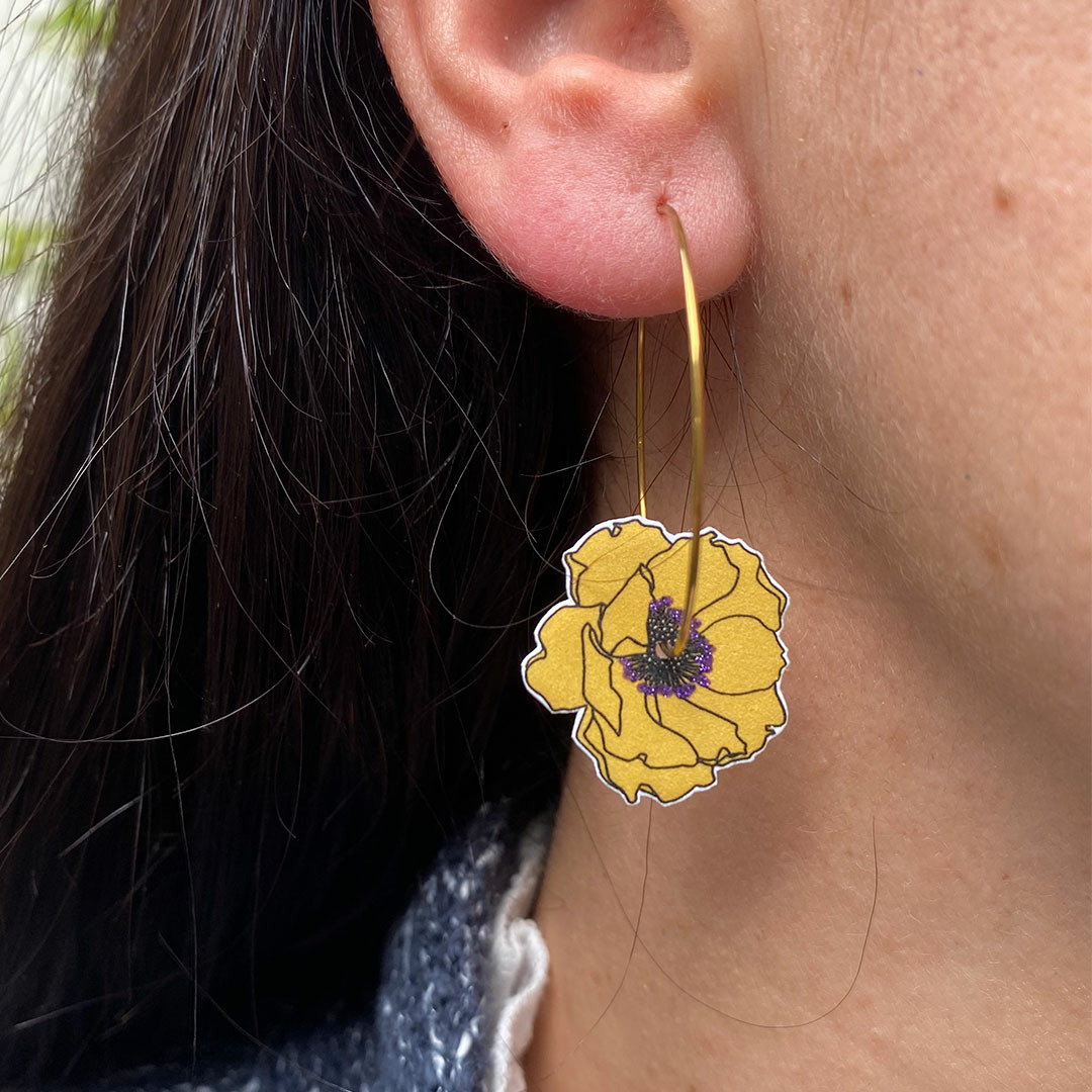 Créoles anémones, tellement légères qu'on les oublierait presque, avec des couleurs peps et des paillettes, que demander de + ?