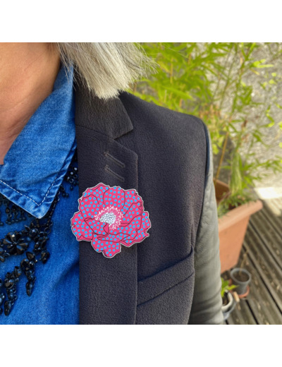Broche anémone coloris rose pois bleus qui agrémentera avantageusement toutes vos tenues !
