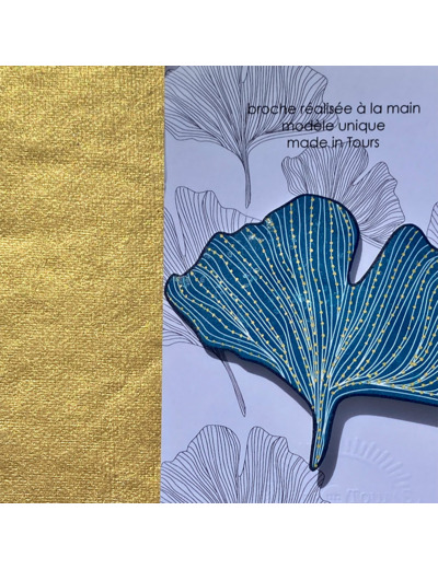 Broche ginko coloris bleu foncé pois argent qui agrémentera avantageusement toutes vos tenues !