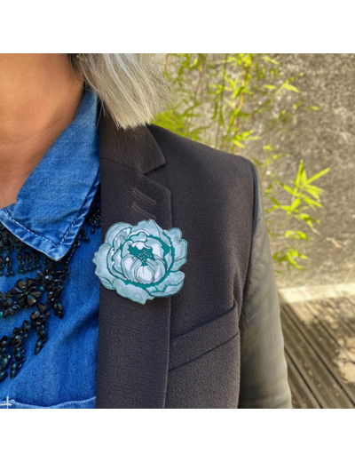 Broche pivoine aquarelle vert pistils pailletés verts qui agrémentera avantageusement toutes vos tenues !