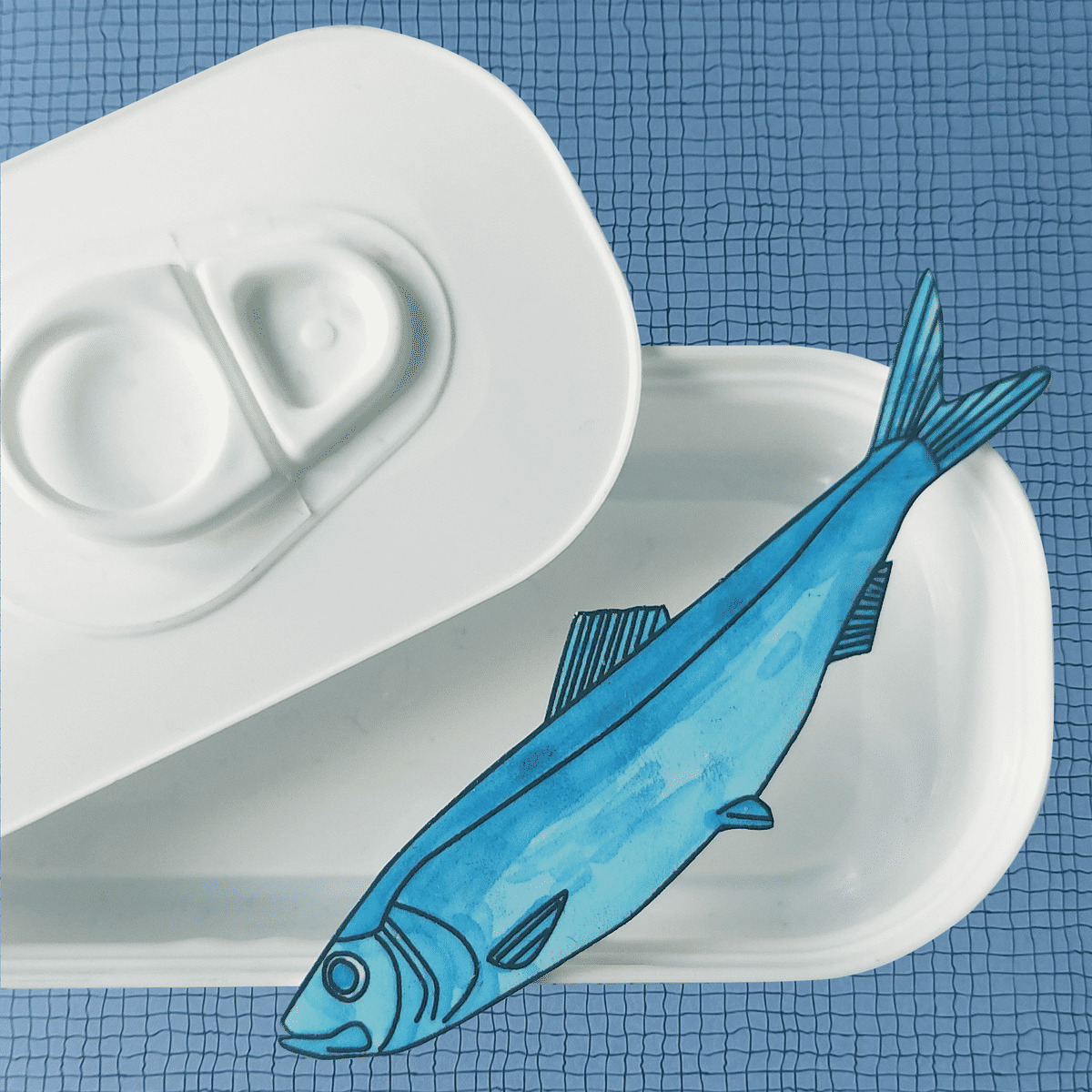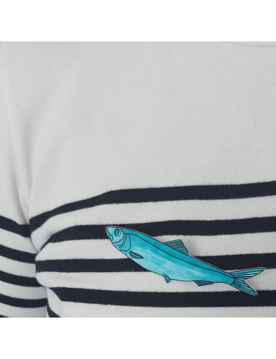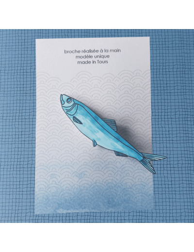 Broche sardine coloris bleu en aquarelle qui agrémentera avantageusement vos marinières pour un total look bords de mer, ou vos revers de veste !
