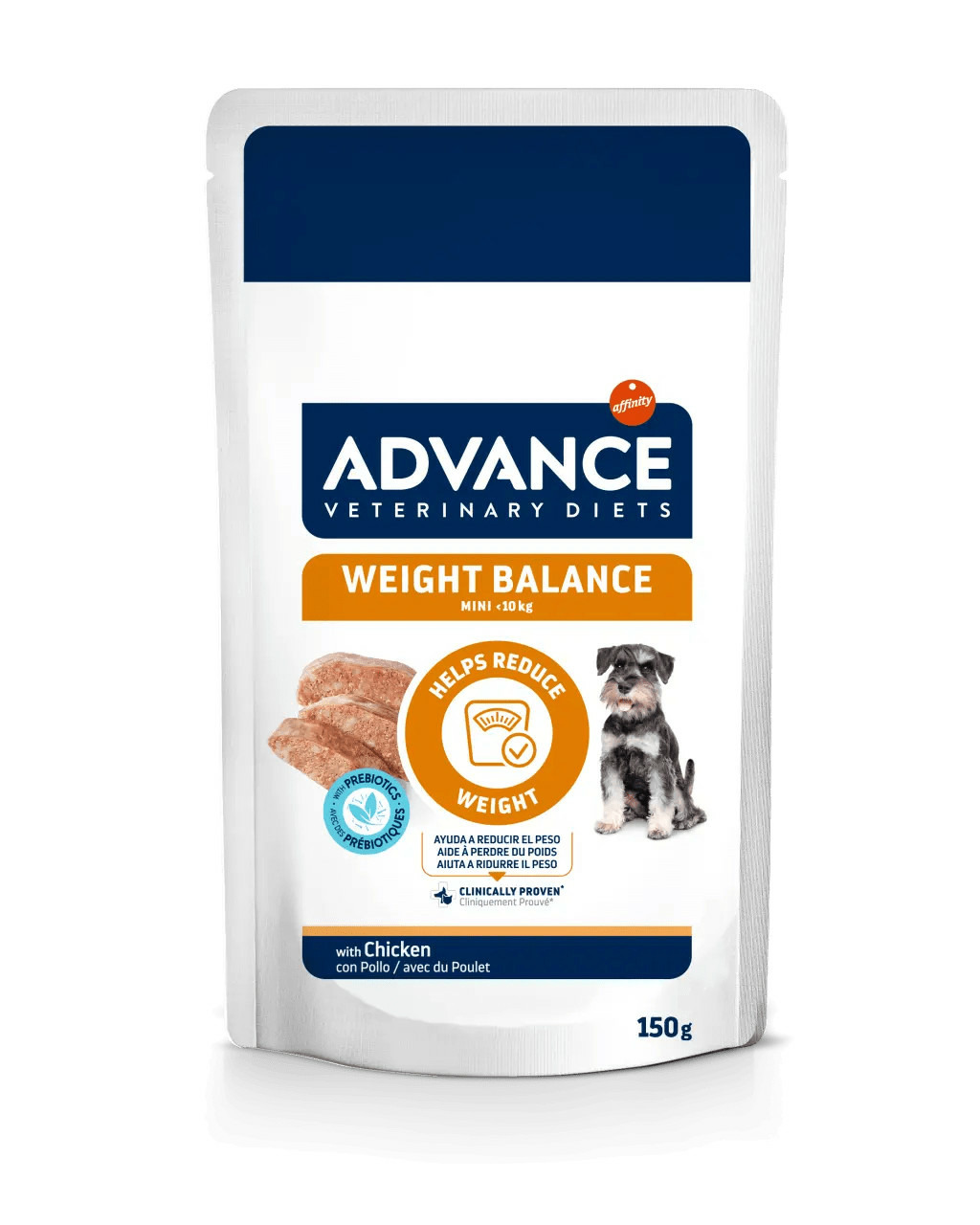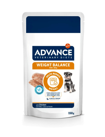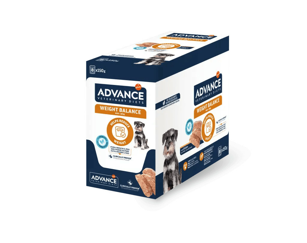 ADVANCE VETERINARY DIETS WEIGHT BALANCE MINI est un aliment diététique humide complet et équilibré, cliniquement prouvé, destiné aux chiens adultes de petite taille (< 10 kg).