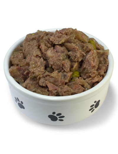 Composition: Agneau (poumon, foie) 62%, poulet (viande, foies et cours) 30%, petits pois 4%, huile de saumon 0,1%, minéraux, xylose.