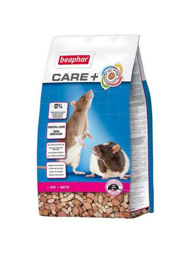Care+ pour rat est une alimentation super premium équilibrée et très appétente, qui a été développée en collaboration avec des vétérinaires et des diététiciens. L’alimentation Care+ est extrudée, donc chaque granulé à la même composition. Leur composition uniforme prévient toute carence qui pourrait résulter d’une sélection des aliments par votre rat. La dureté des granulés participe à l’usure naturelle des dents. Le traitement thermique des granulés facilite la digestion. Care+ contient des acides gras polyinsaturés, des Omega 6 et Omega 3 en proportion équilibrée (provenant du mais, du blé, du soja, du lin) et des protéines animales. L’alimentation Care+ est parfaitement adaptée aux besoins nutritionnels des rats.