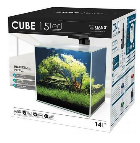 Le CUBE 15 est un petit aquarium en verre facile à utiliser, qui s'adaptera facilement à toute pièce de votre logement. - 1 Filtre intérieur CF40 Ciano®; Inclus: - 1 WATER CLEAR & PROTECTION Taille S; - 1 WATER FOAM Taille S; - 1 LED CLA20 Universal Ciano® (1,5W - 12VDC); - 1 Capot en verre .
