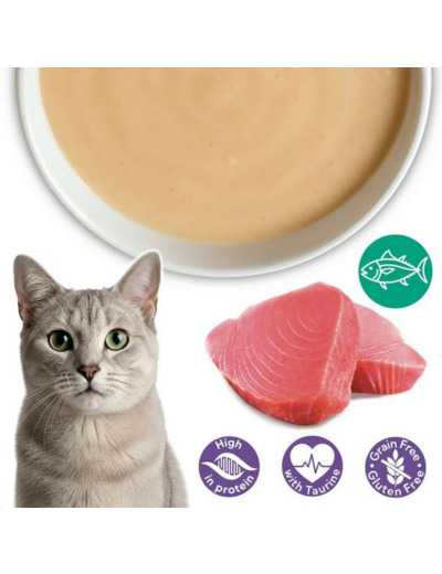 Crème de thon pour chats. Élaborée avec des ingrédients naturels de haute qualité.