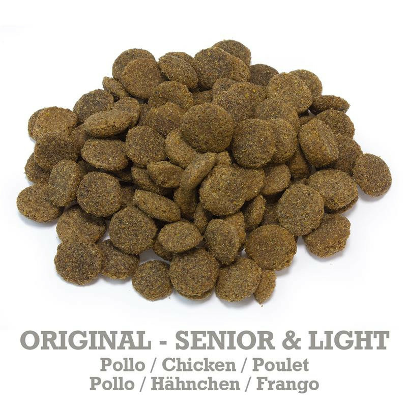 Croquettes premium pour chiens adultes de toutes races, à partir de 7 ans et / ou sujets à l'embonpoint. À base de poulet, de riz et d'ingrédients naturels de haute qualité.