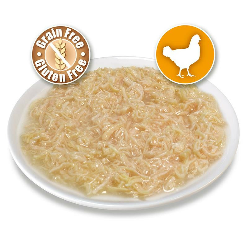 COMPOSITION : Poulet : 70%. Eau : 28,5%. Amidon modifié (E1442) : 1,21%. Additifs : Gomme guar (E412) : 0,2%. Taurine : 0,05%. Gomme xanthane (E415) : 0,04%.