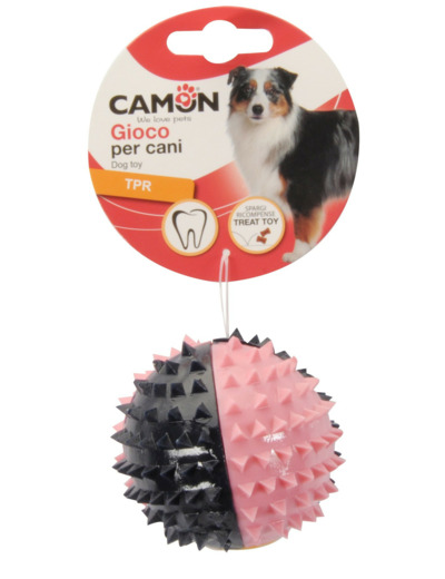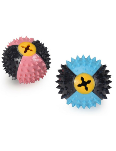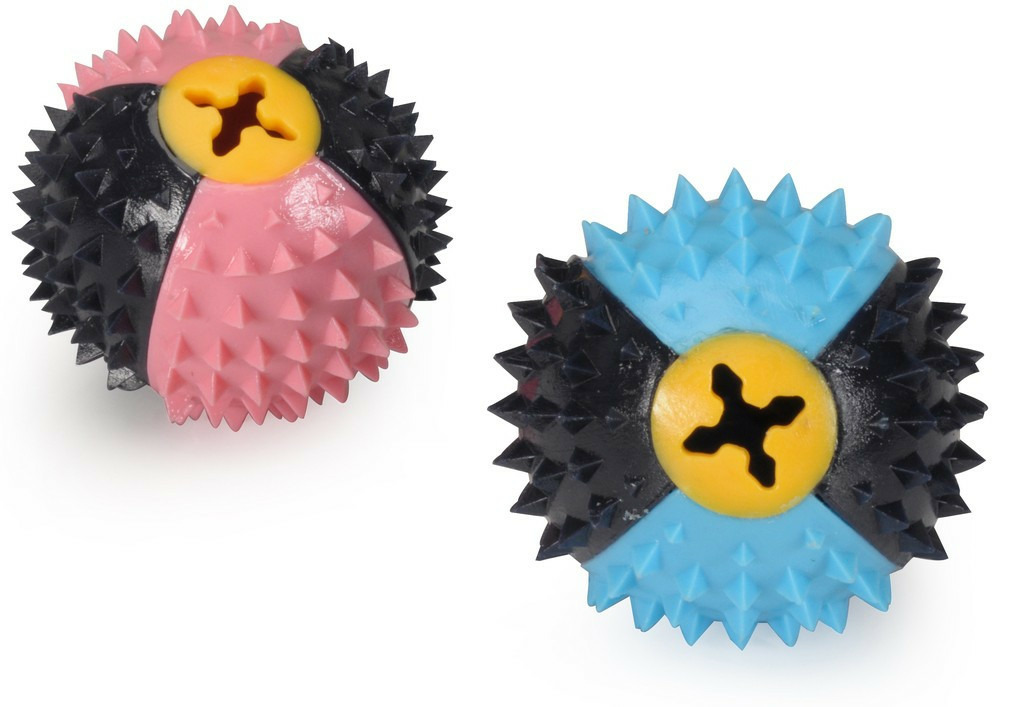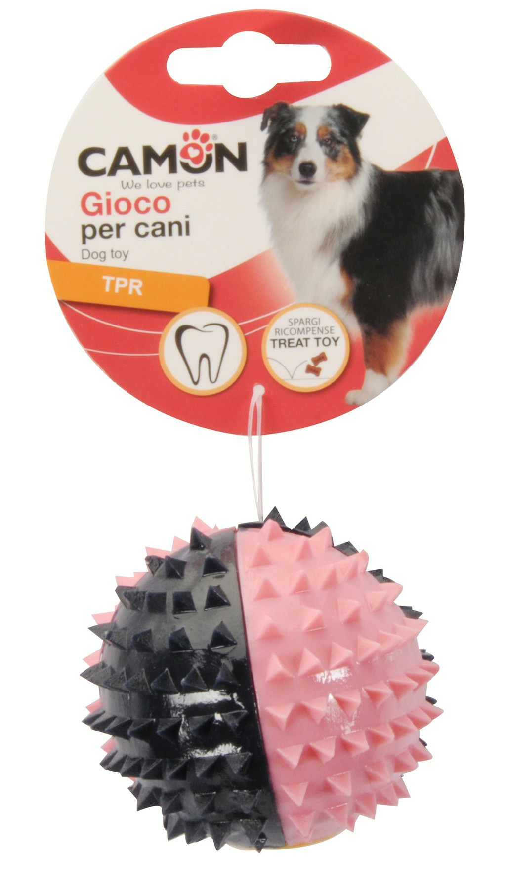 Un jouet amusant en TPR pour chiens, en forme de balle à picots bicolore.