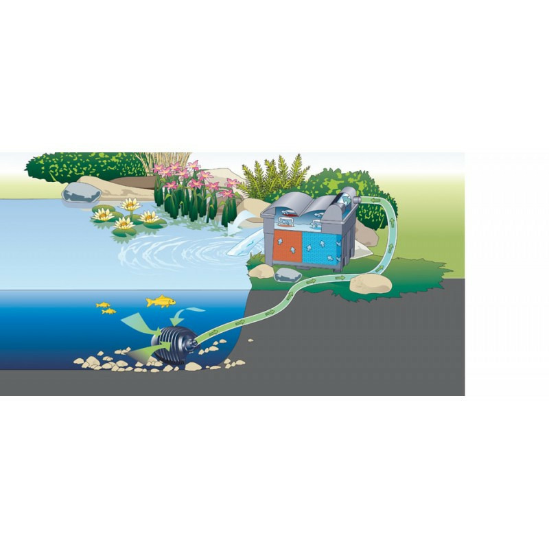 Il est parfaitement adapté aux bassins de 1,7 m³, lorsqu'ils sont peuplés de carpes Koï, jusqu'à 7 m³ maximum.