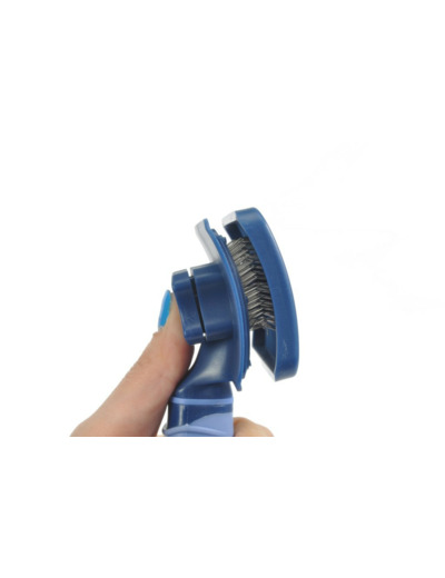 Une simple pression sur le bouton situé à l'arrière de la brosse permet de retirer les poils sans effort, la rendant immédiatement prête pour la prochaine utilisation.