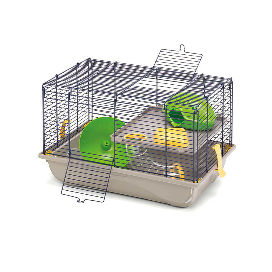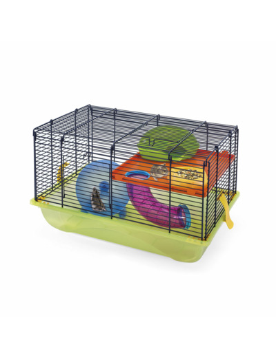 La cage comprend une maisonnette afin de permettre à votre animal de pouvoir se reposer, d’une mangeoire et d’une roue pour les exercices quotidiens. Facile à entretenir et à nettoyer grâce aux crochets latéraux qui vous permettent de séparer la grille du fond en plastique. Les deux ouvertures avec crochets présentent sur le toit et sur le côté empêchent toute fuite de votre rongeur et vous facilite le nourrissage.