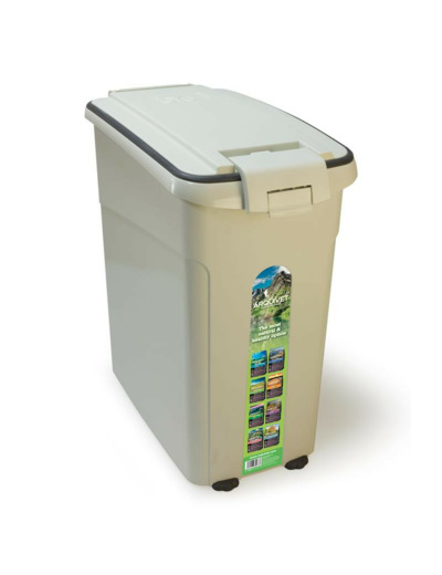 Conserve la fraîcheur des aliments et les protège de l'humidité grâce à son joint en caoutchouc hermétique. Il empêche les mauvaises odeurs et les insectes d'entrer. Comprend une pelle pour recueillir la nourriture. Et des roues pour un déplacement facile. Sans aucun doute, le moyen le plus confortable de stocker la nourriture de vos animaux sans avoir à savoir si vous avez bien fermé les sacs.
