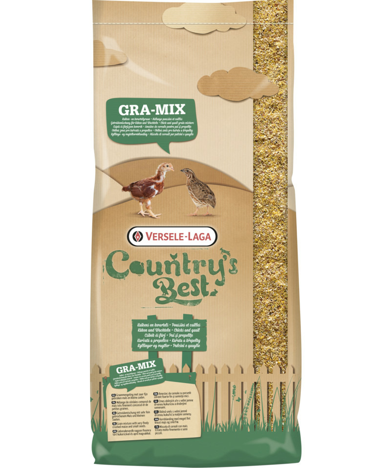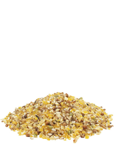 Composition : maïs (55%), blé, sorghum, pois, millet (2%), graines de lin (1%), riz, graines de colza (1%), huile de colza