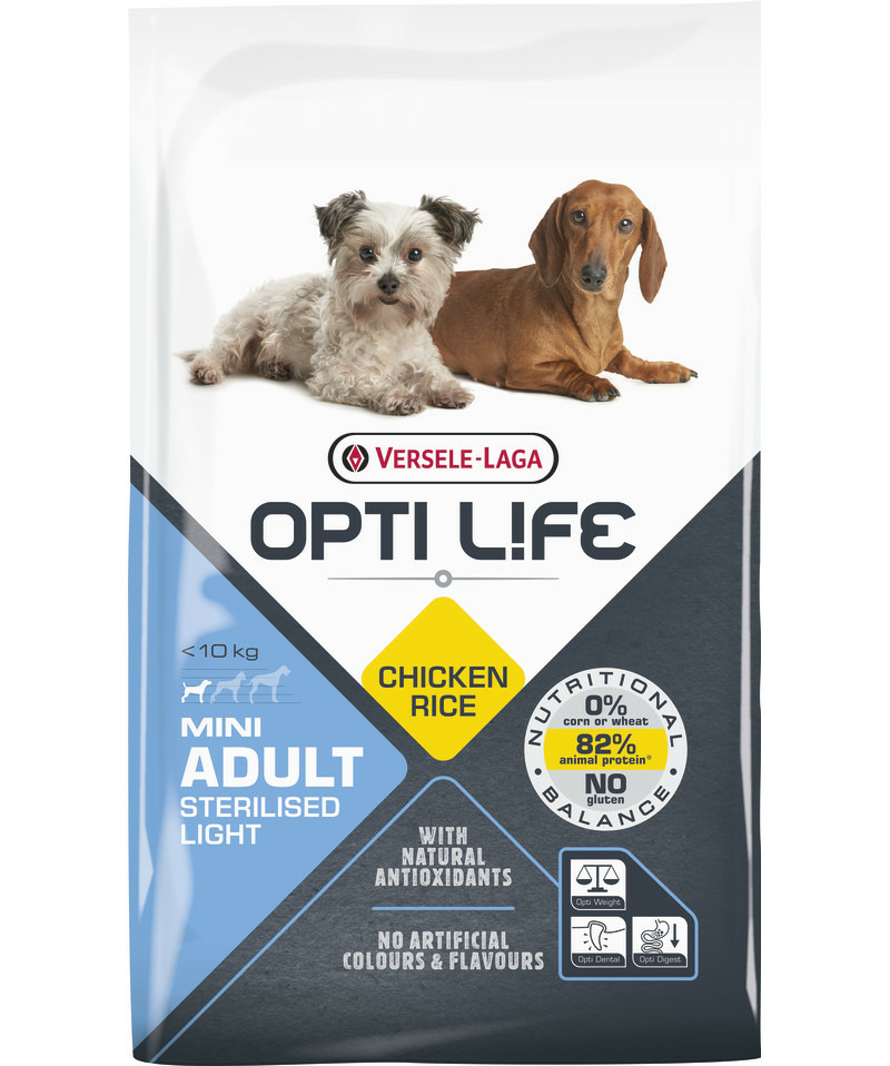 Opti Life Adult Light Mini est une formule parfaitement équilibrée pour les petites races (< 10kg) à base de poulet et de riz contribuant à maîtriser le poids corporel de votre chien.